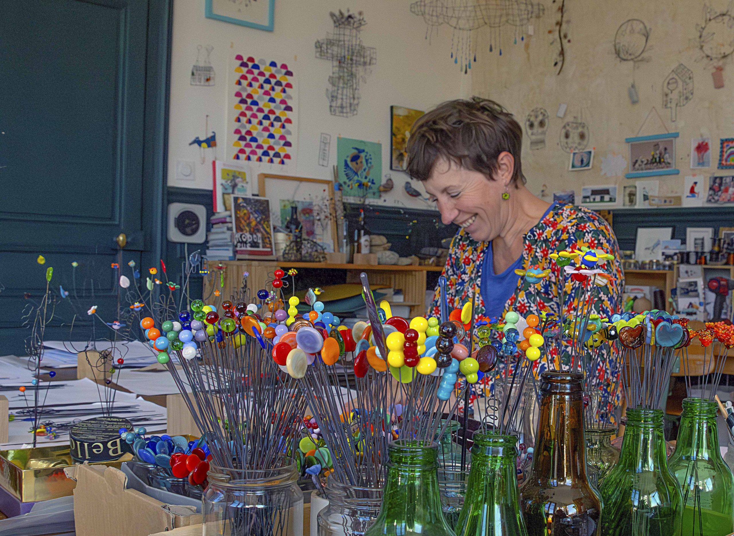 Au fil des saisons, j’aime raconter avec mon fil de fer des petites histoires poétiques et colorées où les fleurs, les paysages, les animaux, les architectures se mêlent en joyeuse harmonie.