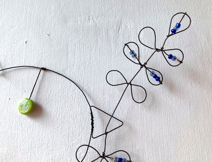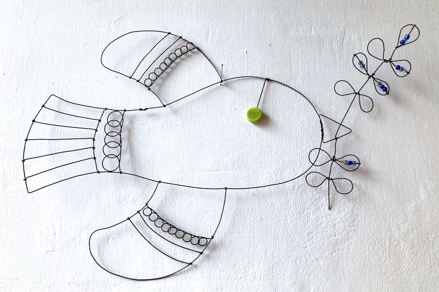 Colombe en fil de fer recuit avec éléments en verre