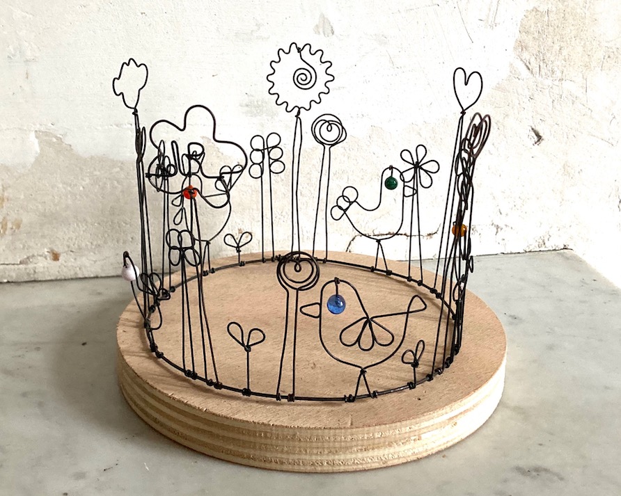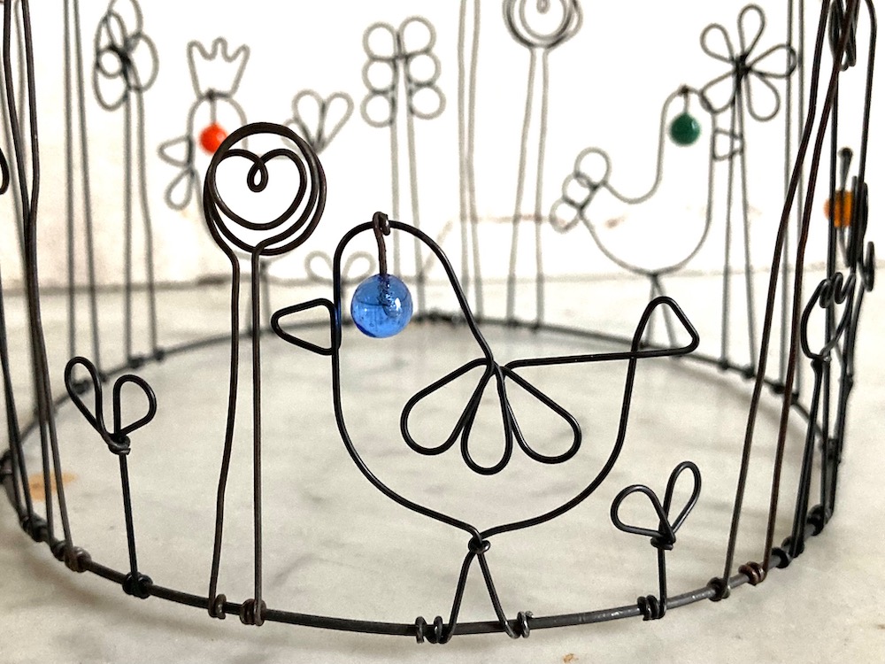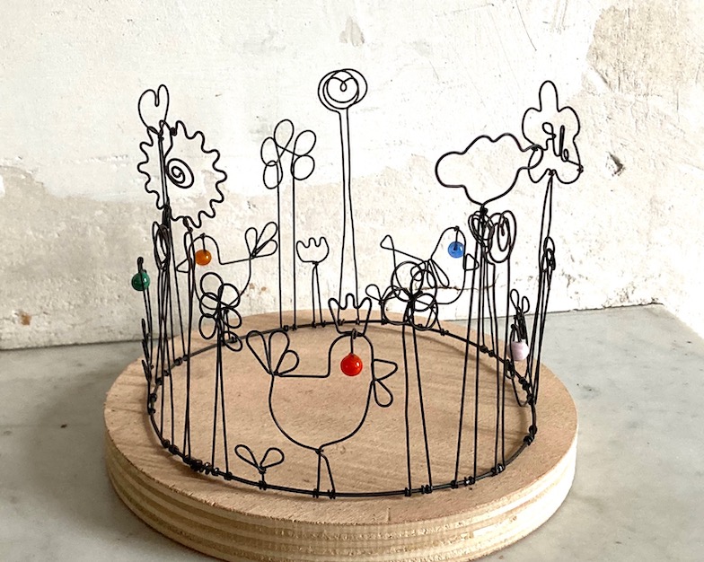 Couronne poules en fil de fer recuit avec éléments en verre