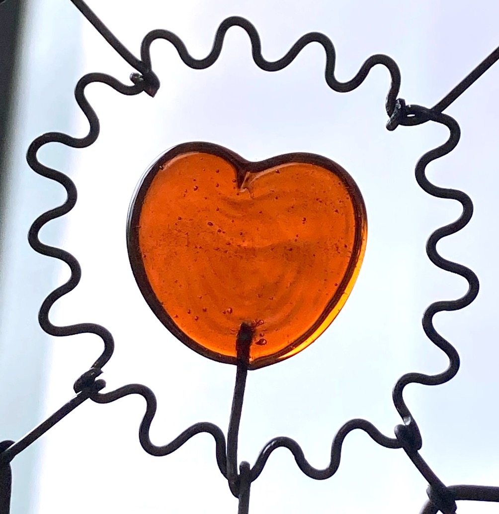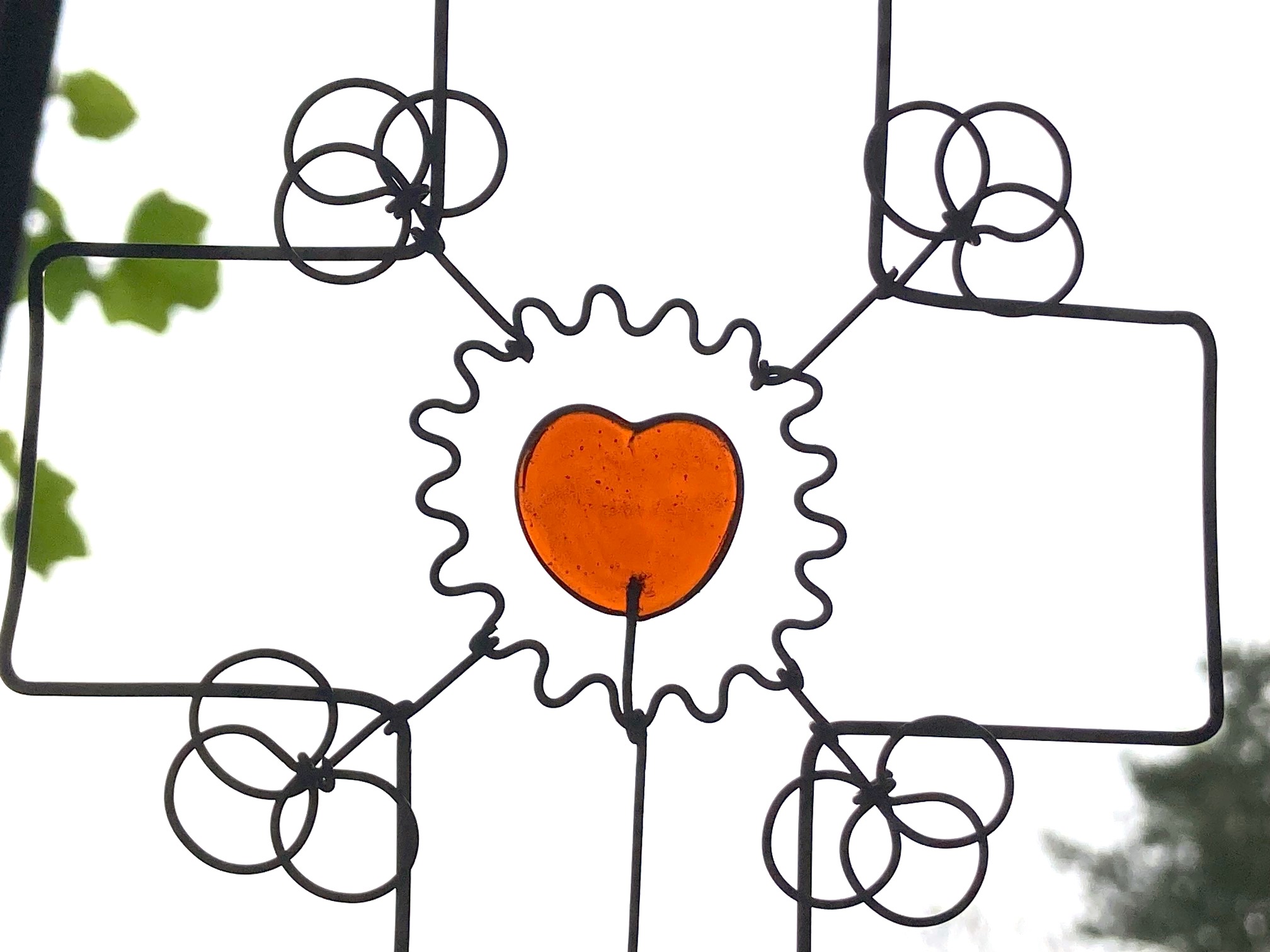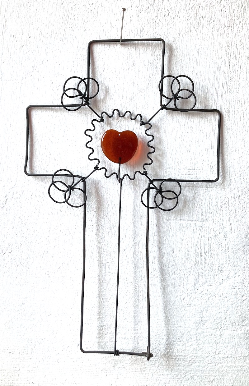 Croix longue en fil de fer recuit avec élément en verre