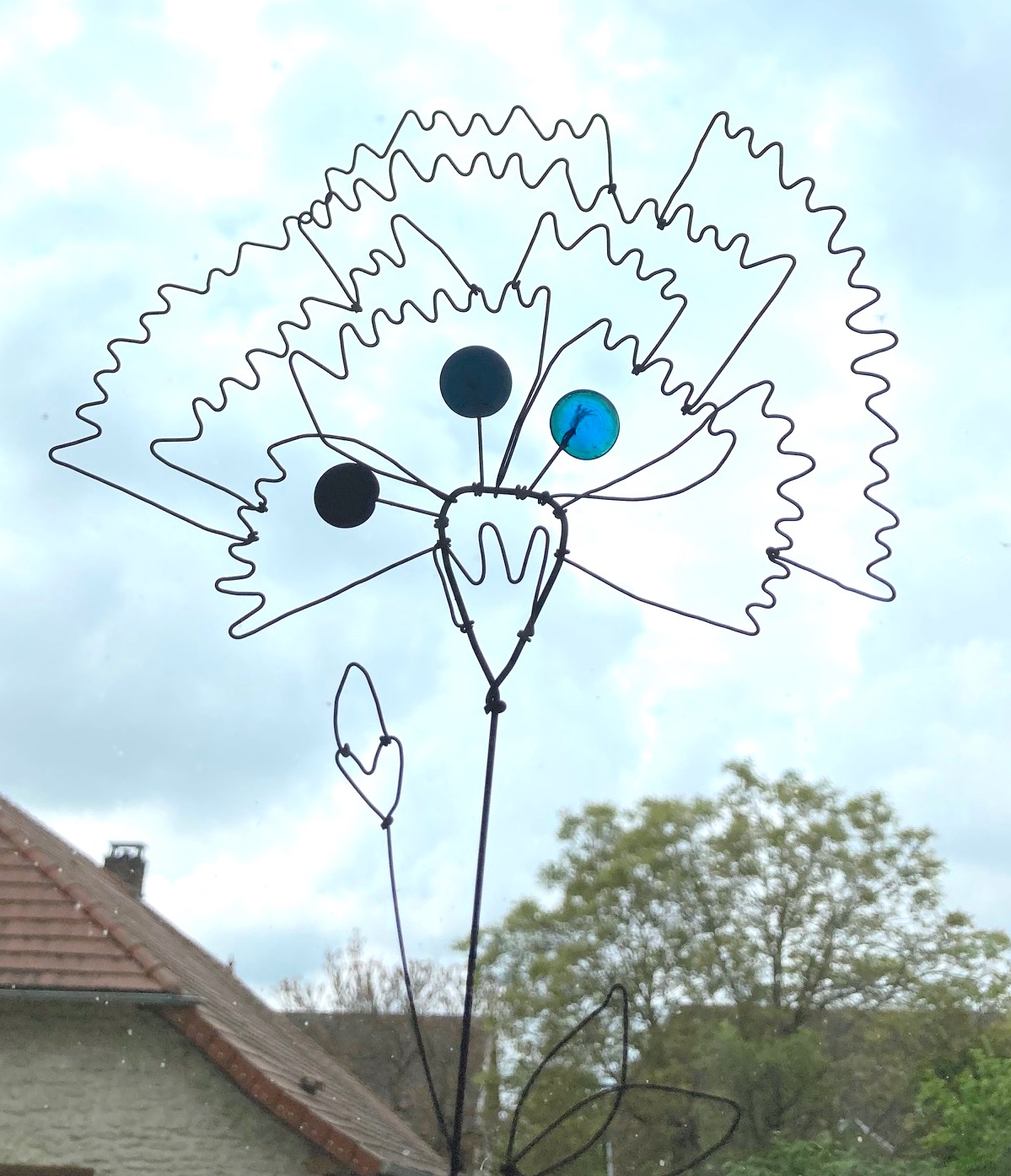 Fleur à planter Chardon en fil de fer recuit avec éléments en verre