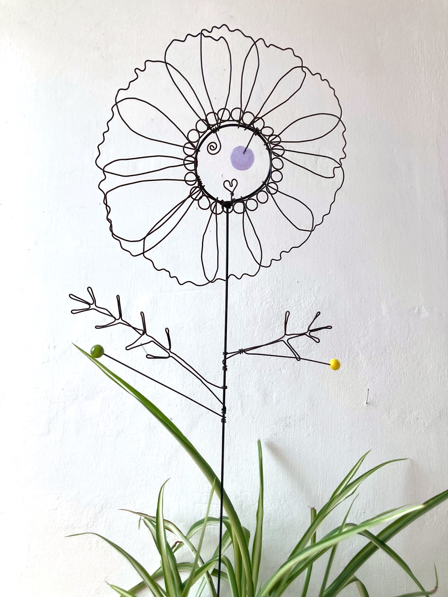 Fleur à planter Cosmos mauve en fil de fer recuit avec éléments en verre