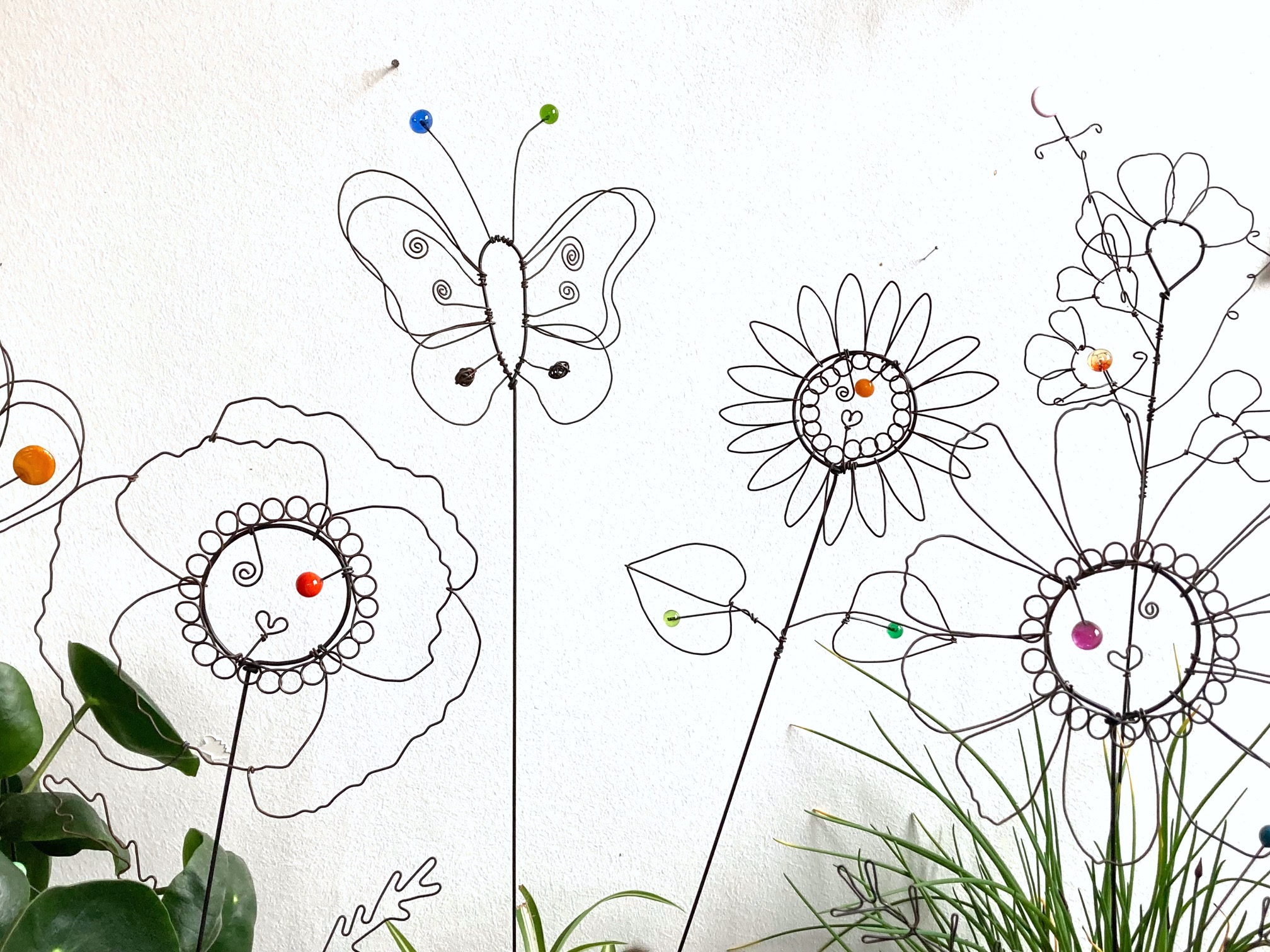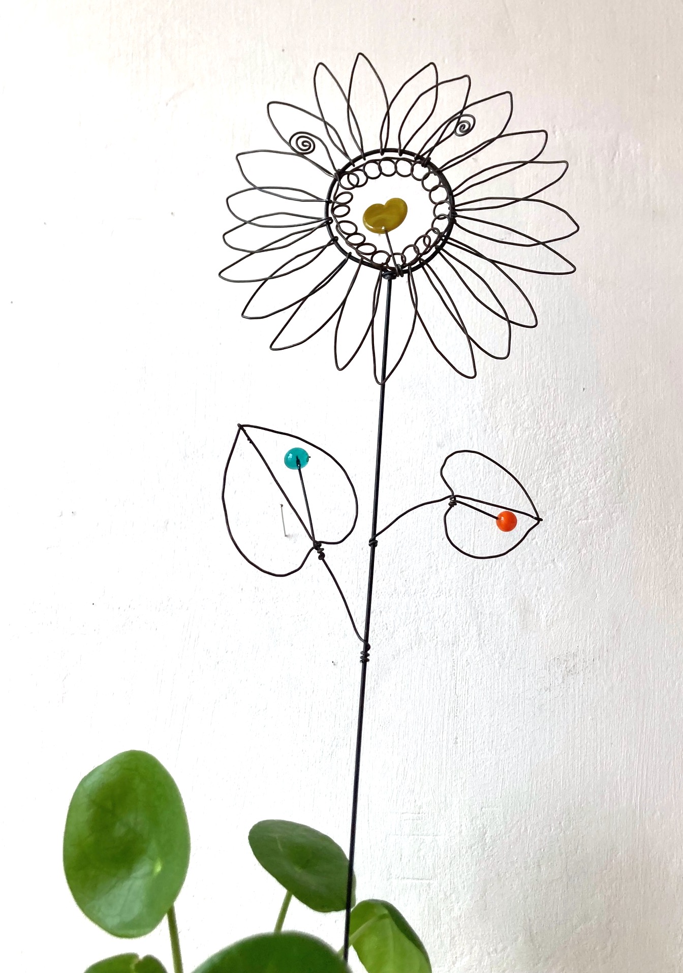 Fleur à planter Tournesol en fil de fer recuit avec éléments en verre