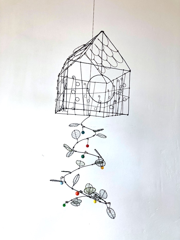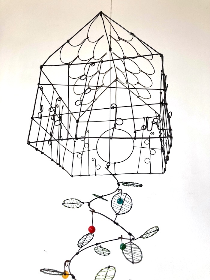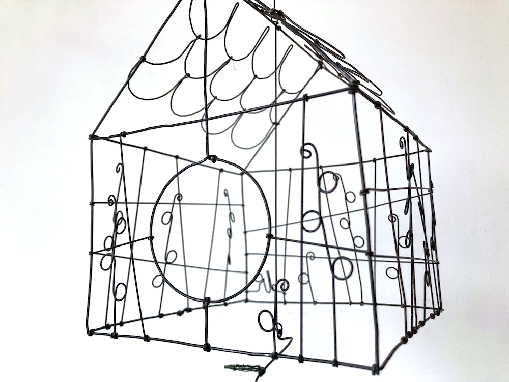 Maison tournicoti en fil de fer recuit avec des éléments en verre