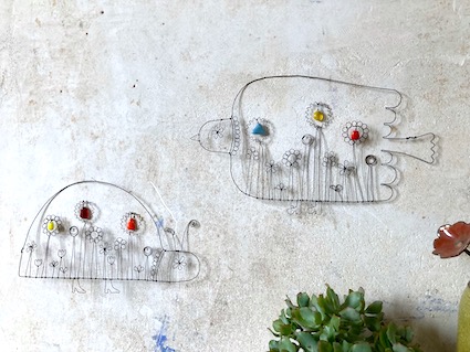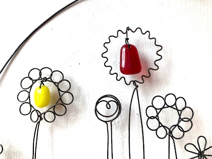 Coccinelle en fil de fer recuit avec éléments en verre